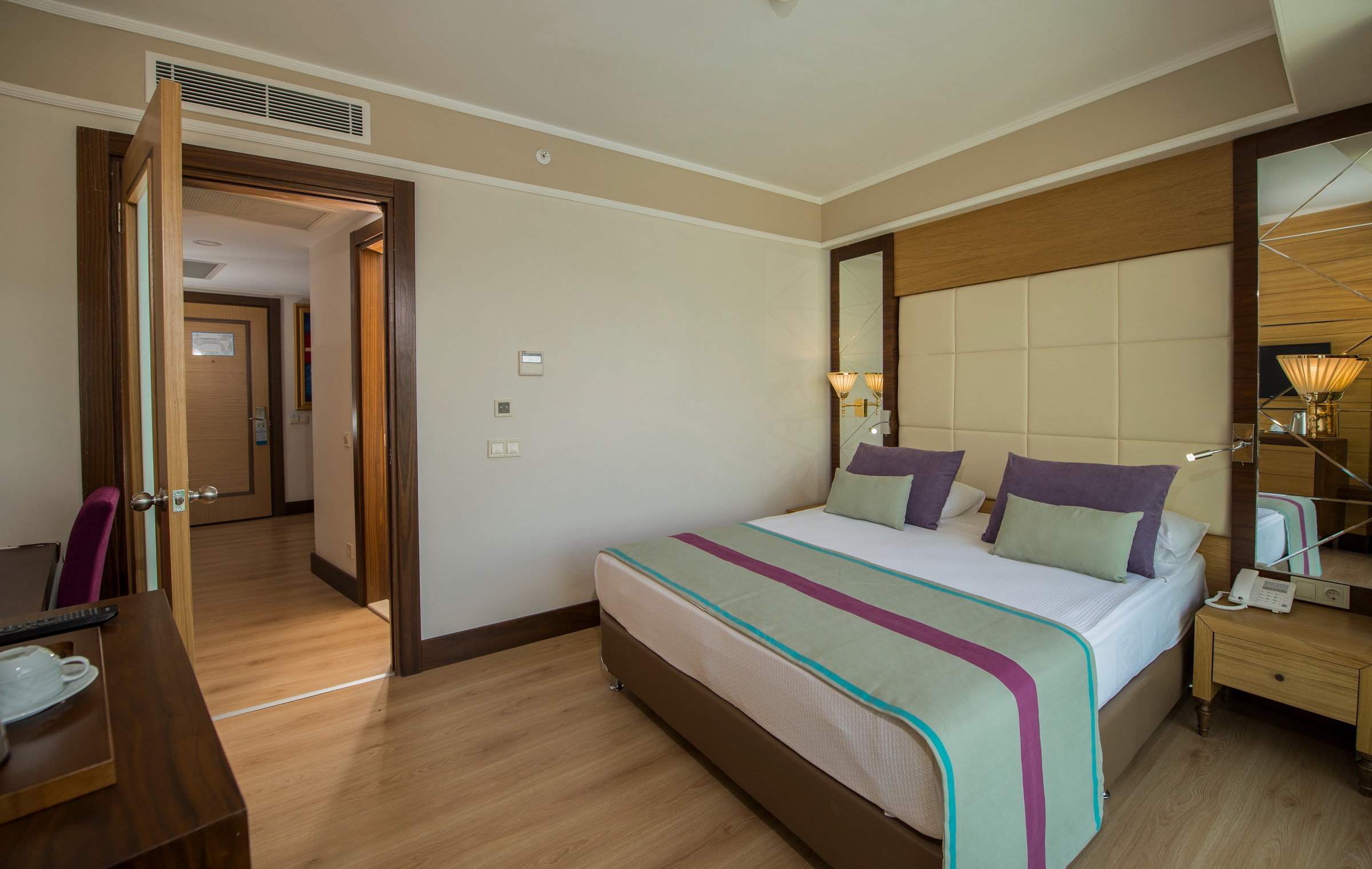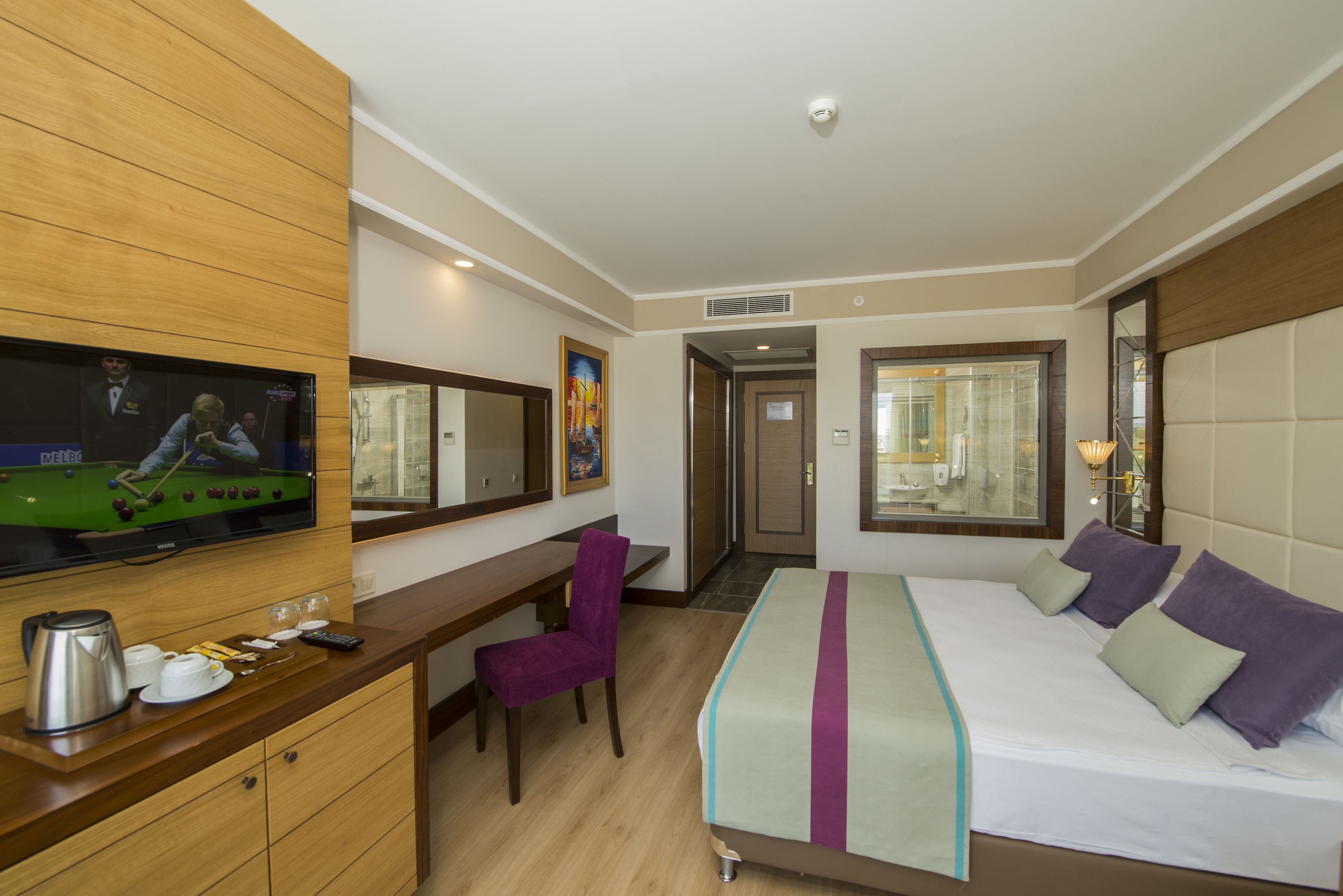 A szobákat légkondicionáló berendezéssel és fürdőszobával szerelték fel. A vendégek a teraszon, illetve az erkélyen is kényelembe helyezhetik magukat. A szobákban egy franciaágy vagy egy kanapéágy található. Különálló hálószobák foglalására is lehetőség van. Kiságyat és pótágyat tudnak biztosítani. Ezen kívül van széf, minbár és íróasztal is. A kényelmet szolgálja továbbá egy minihűtő és egy tea-/kávéfőző. A nyaralás kényelmét szolgálja az internet-hozzáférés, a telefon, a TV-készülék és WiFi. A szobákban szobapapucs is található. Mozgáskorlátozottaknak kialakított szobák is foglalhatóak. A fürdőszobában zuhanyzó található. A fürdőszobában található hajszárító, kozmetikai tükör és fürdőköpenyek a mindennapi kényelmet szolgálják. A gyermekekkel érkezőknek speciálisan kialakított családi szobák állnak rendelkezésre.